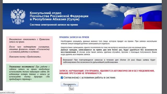 Система электронной записи на прием консульство РФ (инструкция)