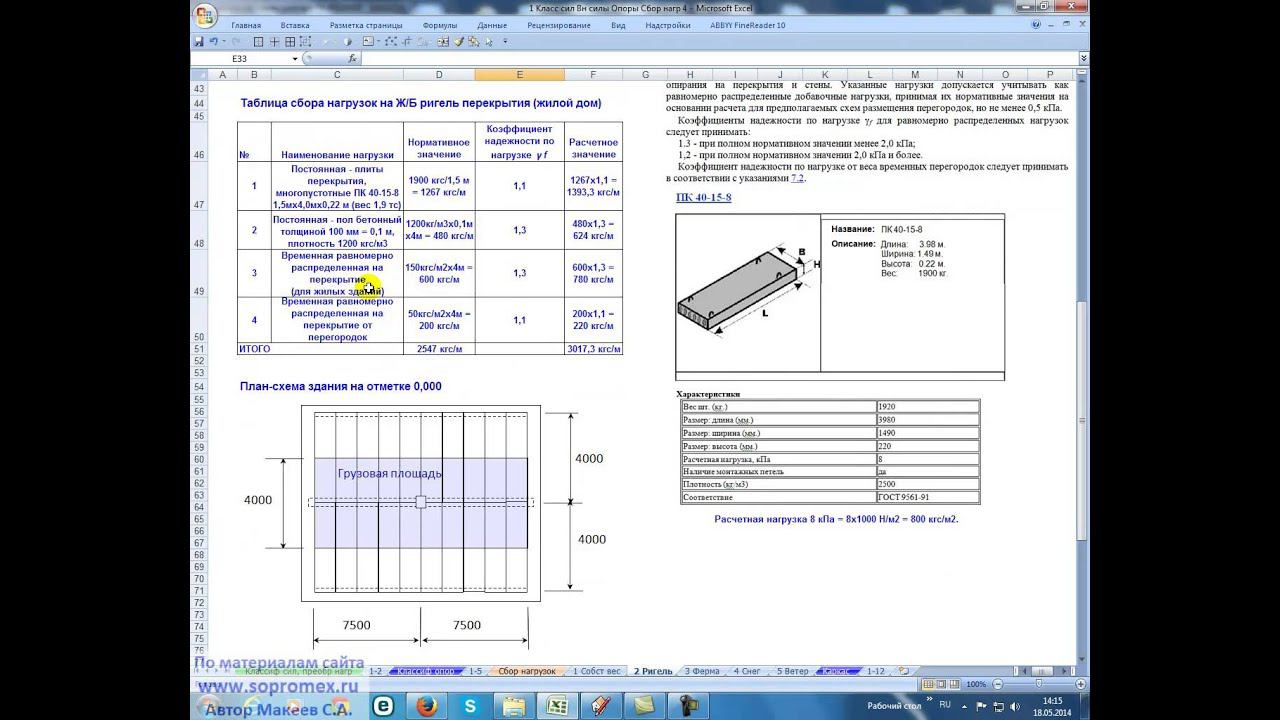 https://sopromex.ru/ - официальный сайт онлайн университета проф. Макеева С.А. Файл видео сопровождения https://yadi.sk/i/ZJXRmD4OdfbWv Приведен классический пример сбора нагрузок на ригель перекрытия жилого здания (плиты перекрытия, полы, временная равномерно распределенная, временная от перегородок). Даны разъяснения по составлению расчетной схемы ригеля перекрытия. http://www.youtube.com/watch?v=w7PbfZlt_s0