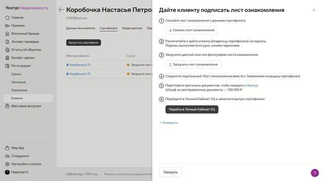 Выпуск сертификата КЭП в сервисе Электронная сделка