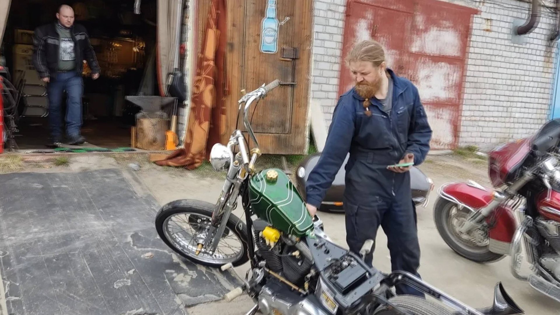 В гостях у Alkothrashers Garage 28 мая 2022 года - Мизантроп завёл свой софтейл после ремонта.