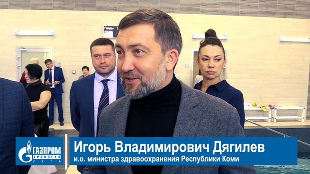 В Ухте при поддержке Газпрома открыт лечебный бассейн 14 апреля состоялось открытие бассейна в Ухтинской физиотерапевтической поликлинике (водогрязелечебнице) после капитального ремонта. В мероприятии приняли участие исполняющий обязанности министра здравоохранения Республики Коми Игорь Владимирович Дягилев, заместитель генерального директора по управлению персоналом ООО «Газпром трансгаз Ухта» Евгений Владимирович Гусев, заместитель руководителя администрации МОГО «Ухта» Марина Николаевна Метелева, генеральный директор ООО «Бетиз» Сергей Сергеевич Омельянович, представители общественных организаций: Коми республиканского отделения «Всероссийское общество инвалидов», городского объединения многодетных семей «Много деток». Ухтинской физиотерапевтической поликлинике более 30 лет. В ней применяются местные минеральная вода и сапропелевые грязи – уникальные по составу и имеющие большую бальнеологическую ценность. Учреждение рассчитано на 1100 посещений в день и принимает на реабилитацию пациентов со всей Республики Коми, а также из других российских городов и зарубежья. Но до недавнего времени водогрязелечебница функционировала лишь на 30% от проектной мощности, в том числе из-за бездействующего бассейна, который пришел в негодность и приостановил свою работу с 2017 года. На средства, выделенные ПАО «Газпром» в рамках Соглашения о сотрудничестве с Правительством Республики Коми, произведен капитальный ремонт помещения бассейна с раздевалками, санузлами, душевыми. Особое внимание уделено созданию условий для доступности и проведения специализированных занятий для маломобильных групп населения. Бассейн имеет две чаши длиной по 11,5 м, различной глубины и наполнения: большая ванна – 1,7 м с пресной водой, малая ванна – 1,2 м с пресной и минеральной водой в соотношении три к одному. – Я хочу поздравить весь коллектив медицинского учреждения, работать и принимать пациентов в новых условиях – это совсем другие эмоции и ощущения. Сегодня нам очень приятно видеть радостные лица посетителей, которые уже занимаются в бассейне. От души благодарю компанию «Газпром», в лице Александра Викторовича Гайворонского, и Главу Республики Коми Владимира Викторовича Уйба за то, что в рамках партнерства осуществлено очень много важных социальных проектов на благо жителей всей республики, – отметил исполняющий обязанности министра здравоохранения Республики Коми Игорь Владимирович Дягилев.