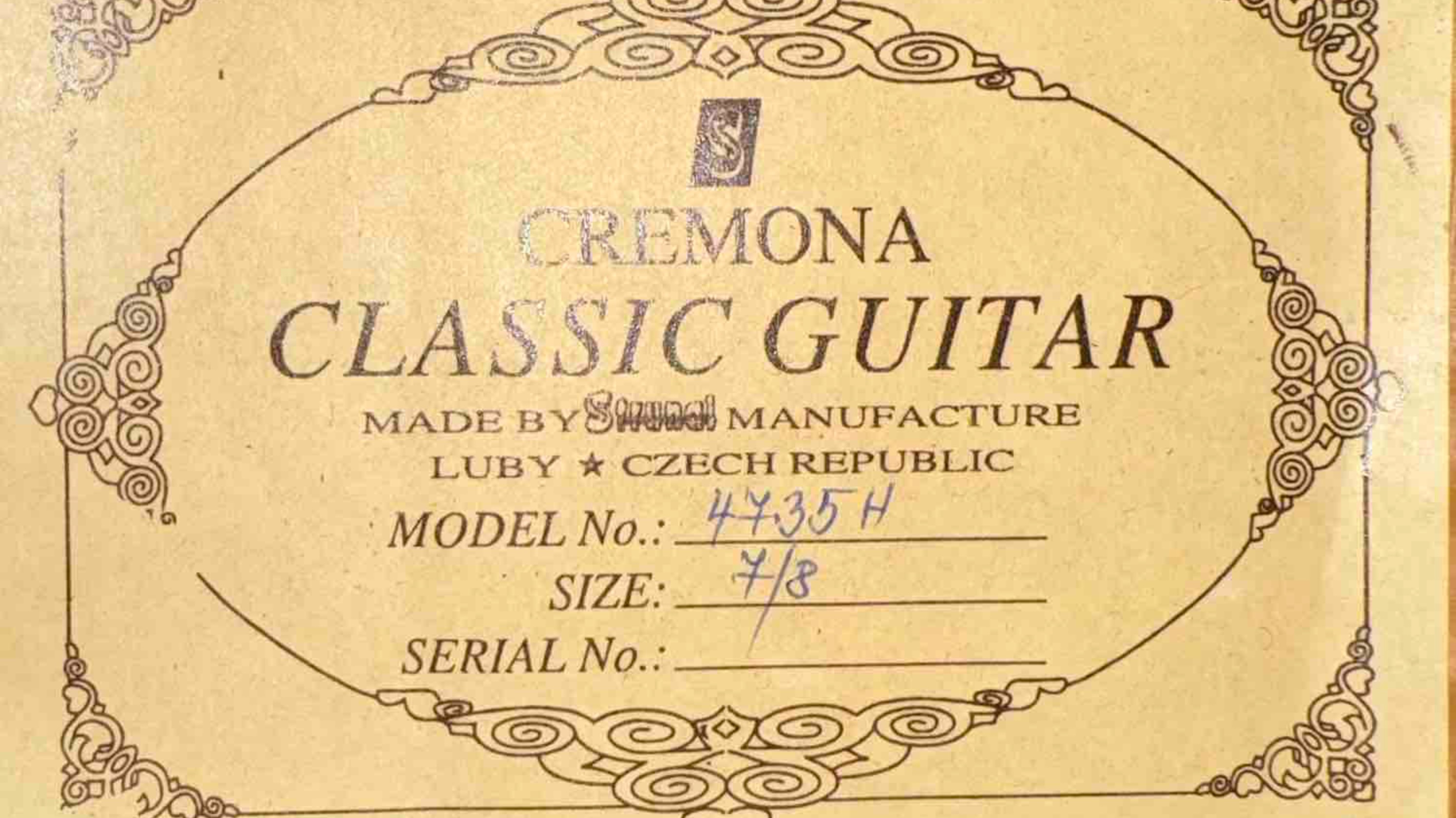 Гитара Cremona 4735Н размер 7/8 - шестиструнная полноразмерная классическая гитара, в производстве которой используются как традиционные, так и экспериментальные материалы, что придаёт звучанию неповторимый колорит. Произведена в Чехии. -Мензура: 620 мм -Верхняя дека: цельный кедр -Корпус: слоёный дуб интенсивного морения, тонировка под палисандр -Гриф: красное дерево -Накладка: красное дерево -Классический колковый механизм с никелированным покрытием -Нейлоновые струны -Отделка: глянец -Цвет: натуральный