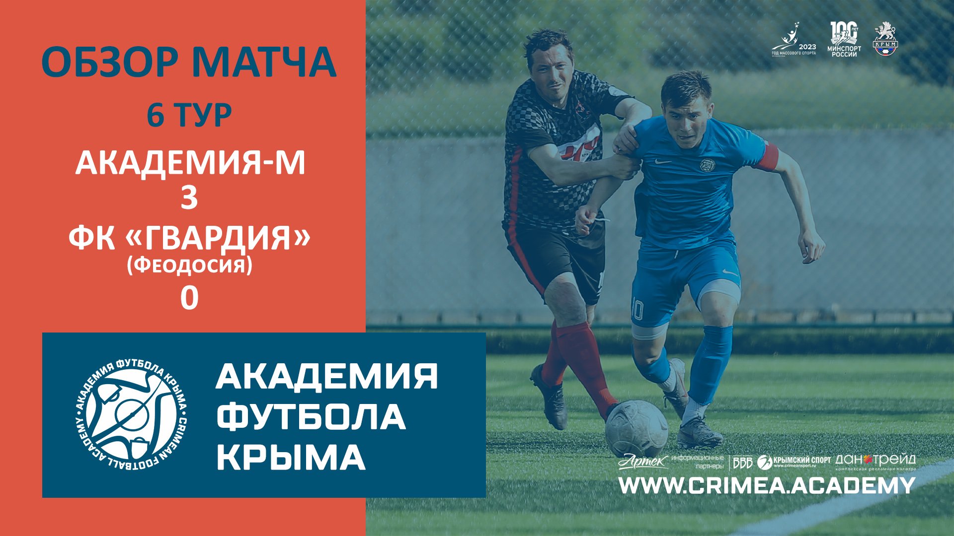 Обзор матча шестого тура Открытого чемпионата Республики Крым по футболу среди мужских любительских команд, сезон 2023 года: Академия футбола Крыма-М - ФК "Гвардия" (Феодосия) Наш сайт: https://www.crimea.academy/ Академия футбола Крыма – это большая футбольная семья, которая открыта для общественности и готова к взаимному сотрудничеству, обмену опытом и профессиональному общению. Наша цель – подготовка качественных и конкурентоспособных футболистов с учетом современных требований, а также образованных и всесторонне развитых членов современного общества. Наша приоритетная задача – отбор детей, проявивших выдающиеся способности в области футбола для совершенствования их спортивного мастерства. Команды Академии ориентированы на атакующий и зрелищный футбол, в котором удовольствие получает не только сам игрок, но и зритель. При этом интересы команды не должны идти в ущерб задаче воспитания отдельного футболиста. В основе воспитания юных футболистов в нашей Академии лежит принцип – "подготовка игрока, а не команды". #футбол #спорт #СвернёмГоры #football #soccer #sport