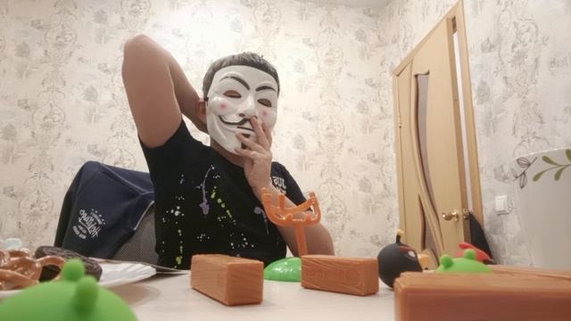 распоковка подарков от подруги. angry birds. маска анонимуса и другие подарки
