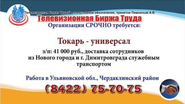 Вакансии и телефоны прямых работодателей в специализированной программе по трудоустройству "Телевизионная Биржа Труда" - г.Ульяновск