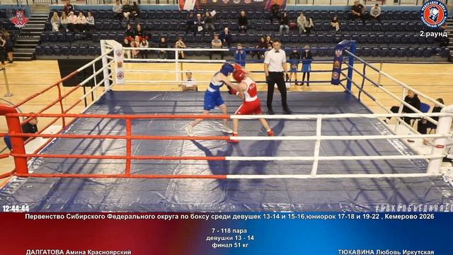 118 финал 51 кг ДАЛГАТОВА Амина Красноярский ТЮКАВИНА Любовь Иркутская