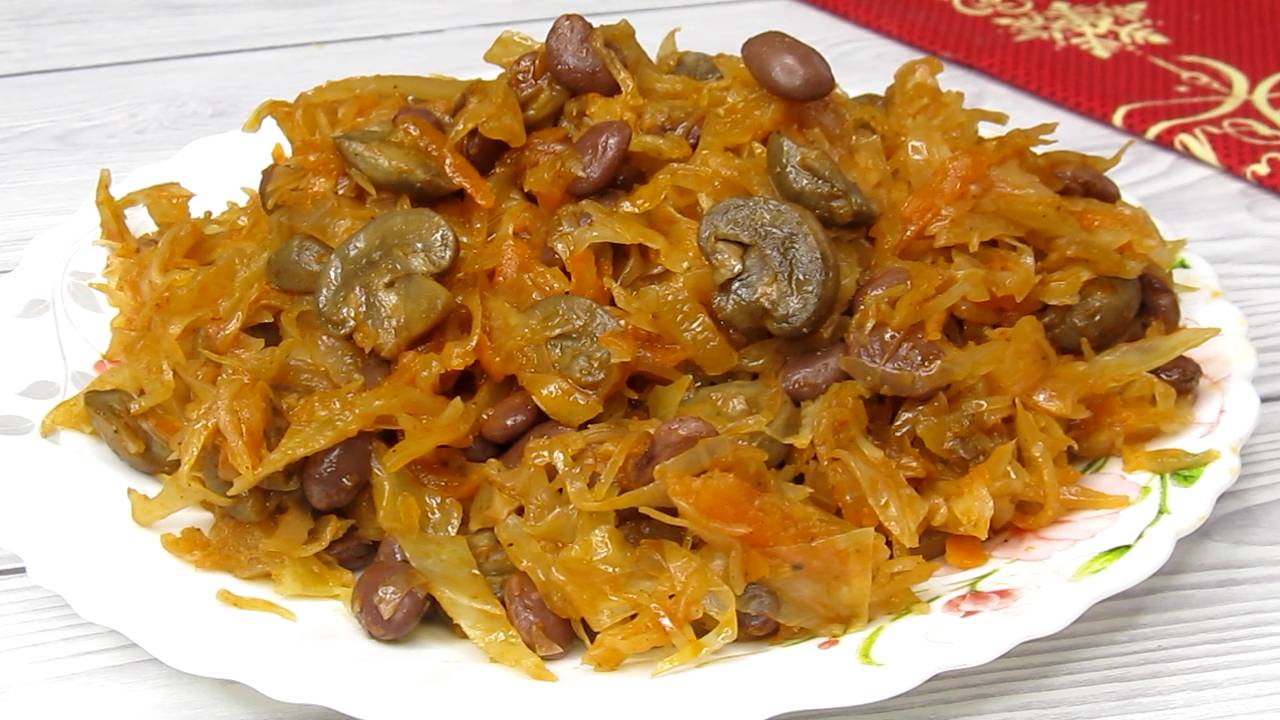 Самый вкусный вариант тушёной капусты. Ну что так мало...мне всегда так говорят. Осела...отвечаю. Приготовьте, капустка вкусная! Рецепт: Капуста - 300 г Шампиньоны - 300 г Фасоль консервированная - 100 г Лук - 1 шт Морковь - 1 шт Томатная паста - 1 ст.л (сахар по желанию 1 ч.л без горки) Соль, перец по вкусу Вода - 80 - 100 мл Масло растительное - 3 ст.л