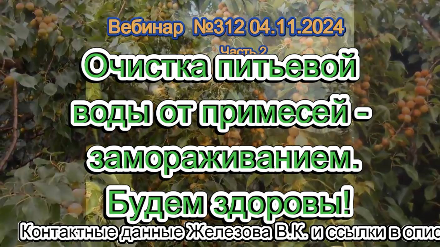 Железов Валерий. Вебинар 312. ч.2. Очистка питьевой воды от примесей - замораживанием. Будем здоровы
