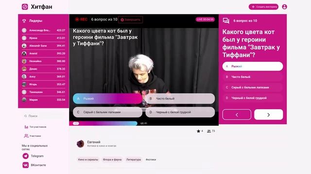 Викторина платформы интерактивных викторин ХитФан с ведущим DFM Евгением Кротовым от 9 ноября