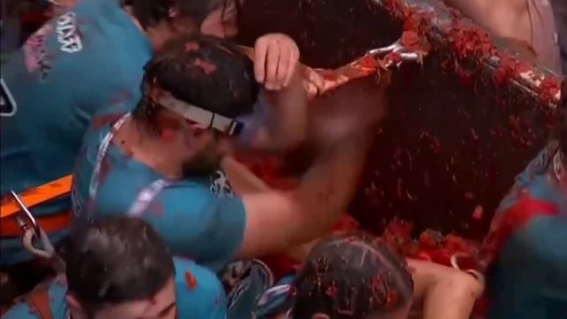 ⚡️В испанском городе Буньоль провели масштабную битву помидорами в честь фестиваля «Томатино».