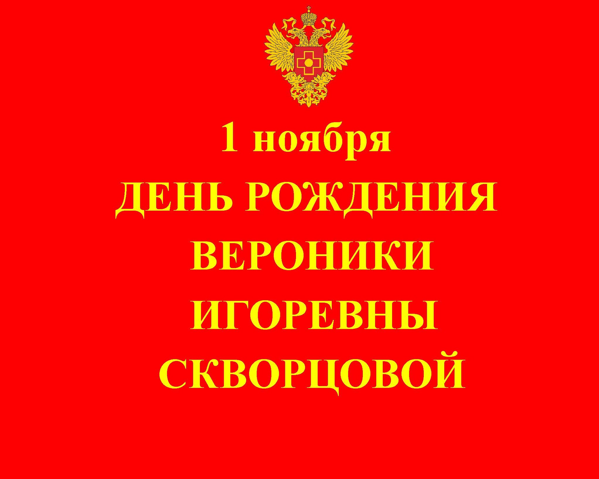 1 НОЯБРЯ ДЕНЬ РОЖДЕНИЯ ВЕРОНИКИ ИГОРЕВНЫ СКВОРЦОВОЙ РУКОВОДИТЕЛЯ ФМБА РОССИИ