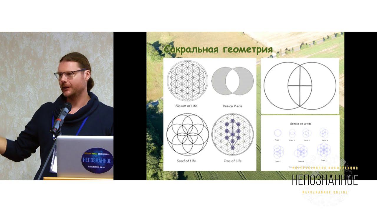 На интерактивной конференции НЕПОЗНАННОЕ в 2020 году Денис Стёпкин представил доклад в основном зале по теме своих исследований: «Круги на полях: Божественная геометрия» Круги на полях удивительны. Узоры Кругов завораживающе прекрасны. Удивительно и их воздействие на человека, зачастую целительное. Они не творение рук человека, и это легко доказать. Тогда что это? Послание? Кого? Кому? О чем? И если это послание, значит разумно пробовать его читать или воспринимать иным способом. Удивительна информация, закодированная в Круги. Математические формулы, невероятно точная сложнейшая геометрия, визуализация определенных дат, веществ, концепций. Удивительно, что при этом большинство Кругов на полях следует определенному типу геометрии, издревле называемой сакральной геометрией. Эта геометрия находится повсюду от зарождения человеческого эмбриона до точных пропорций животного и растительных царств, человеческого тела и строения галактик. Сакральная геометрия обнаруживается в сотнях пропорций Великой пирамиды в Гизе и лежит в основе создания исцеляющих мандал всеми древними культурами. Сакральная или Божественная геометрия это и язык самой жизни, и матрица, по которой создано все, что создано. И это легко доказать. Каждая форма сакральной геометрии – это послание, это язык, который знающий способен прочесть. Поэтому сакральная геометрия, обнаруживаемая в узорах Кругов на полях, – Ключ к понимаю их послания. И это возможно показать. Чем больше соприкасаюсь с Кругами, тем очевиднее, они – послание, которое несет энергию обновления. Это послание кодировано для множественных уровней восприятия, неизмеримое большинство которых находится вне нашего сознательного контроля. Часть поддается расшифровке через знание сакральной геометрии. В действительности, все, что мы «знаем» о Кругах на полях, – неизмеримо меньше того, чем они в действительности являются. Это послание словно знает, кто мы есть на самом деле, и обращается напрямую в нашу сокровенную суть, скрытую от нас самих. И от контакта с Кругами эта суть пробуждается. Это можно почувствовать. Круги на полях - это сложное и загадочное явление, демонстрирующее узоры сакральной геометрии, предполагающие связь между математикой, сознанием и Вселенной. 00:00 Круги на полях - это увлекательное явление, которое иллюстрирует нашу творческую силу как душ, а время измеряется нашими проявлениями, и докладчик исследует связь между ангелами, временем и древними текстами. 04:21 Круги на полях - это сложное и загадочное явление, которое не может быть воспроизведено человеком или заряженной плазмой, и они взаимодействуют через различные системы, привлекая внимание всего мира и приводя к обширным исследованиям. 10:37 Круги на полях следуют алгоритму сакральной геометрии, который управляет созданием всего во Вселенной, включая наши тела и взаимоотношения, и может привнести гармонию и неожиданные изменения в нашу жизнь благодаря созданию мандал и взаимодействию с ними. 14:34 Геометрический узор из пересекающихся кругов напоминает о 7 днях творения, в то время как рисование кругов определенным образом может улучшить отношения и привести к открытию цветка жизни, связывающего сакральную геометрию с нашим сознанием и вселенной. 21:58 Геометрические фигуры в кругах на полях, созданные под влиянием намер