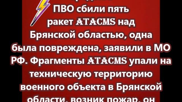 Средства ПВО сбили пять ракет ATACMS над Брянской областью, одна была повреждена