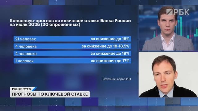 Подписывайтесь на канал: https://www.youtube.com/channel/UCD23js7wHnyG_yhimDMpLpg?sub_confirmation=1 --------------------- Задать вопросы ведущим «Рынков» и приглашенным экспертам можно через наш бот в Telegram: https://t.me/QuestionsRBCbot Неделя до ставки. О чем поговорим: Большинство участников консенсус-прогноза РБК — аналитиков крупнейших банков и инвестиционных компаний — считают, что ЦБ снизит ключевую ставку на 200 базисных пунктов на заседании 25 июля. 18% годовых прогнозируют 21 из 30 экспертов. ️❓ Тем временем председатель комитета Госдумы по финансовому рынку Анатолий Аксаков заявил, что оптимальный уровень ставки для российской экономики — около 7%. По его ожиданиям, мы можем увидеть такую ставку в 2026 году. Но реально ли это? Какие есть аргументы в пользу активного снижения «ключа»? И чего ждать от ставки к концу этого года? Индекс гособлигаций RGBI держится в районе 118 пунктов. Это же значение было в октябре 2023 года при ключевой ставке 13%. Не слишком ли много оптимизма? Поговорим о корпоративных облигациях, ОФЗ и валютных бондах. Чему из этого место в вашем портфеле прямо сейчас? Ведущие: Дмитрий Александров Богдана Прихода Гость: — Александр Иванов, аналитик по макроэкономике УК «Ингосстрах-Инвестиции» 00:00 Что будет с ключевой ставкой? 01:00 Как рынок отреагировал на новые санкции 03:00 Как быстро Сбербанк закроет дивгэп 03:50 Подробнее об IPO БКС 04:40 Что будет с ценами на жильё 05:25 Ещё больше застройщиков обанкротится? 07:10 Все аналитики ожидают снижения ключевой ставки на ближайшем заседании? 08:50 Ставку снизят до 18%? 10:10 Ждём осенних «сюрпризов» в российской экономике? 12:35 На каком уровне будет ключевая ставка в следующем году 14:50 Есть ли инвестидея в ОФЗ 16:00 Нет ли сейчас перекупленности в корпоративных облигациях 17:19 Рубль сейчас слишком крепкий? 19:00 Время покупать валютные бонды уже пришло? --------------------- #РБК #инвестиции #ЦБ --------------------- Подпишитесь на нас в соцсетях: Telegram-канал «Сам ты инвестор»: https://t.me/selfinvestor Telegram-бот «РБКарп Дивиденды»: https://web-telegram.ru/#/im?p=@Karpinvest_bot Рассылки РБК Инвестиции: https://investletter.rbc.ru/ VK: https://vk.com/rbc_investments