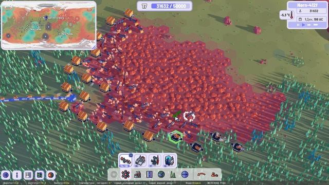 Закончил выработку месторождения железной руды на юг от Нового Санкт-Петербурга и снес дамбы. Продолжил увеличить произвосдвто нанокомпозитов для поставки на землю и в свои города. Подключил ещё одно месторождение железной руды к производствам около Нового Санкт-Петербурга.