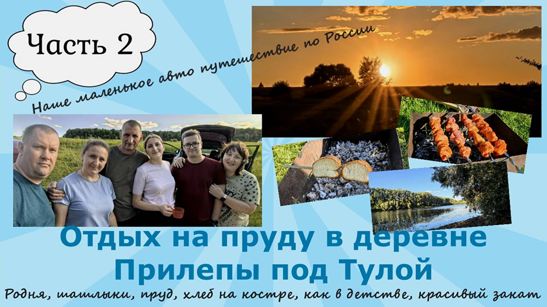 Отдых на пруду в Прилепах под Тулой. Родня,шашлыки, хлеб на костре как в детстве,красивый закат.Ч.2