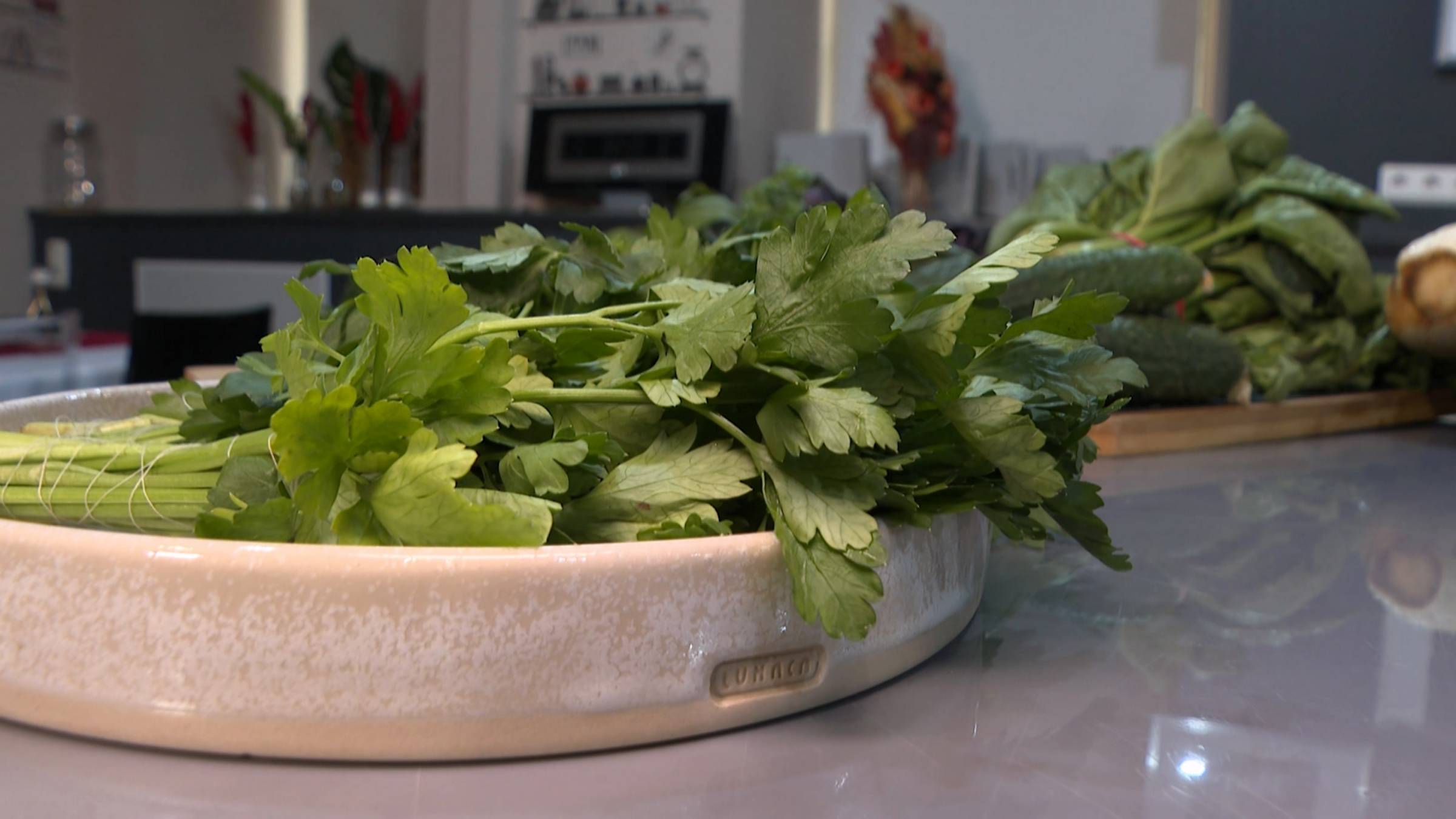 КСЕНИЯ СОТНИКОВА, корреспондент: Зелёный — самый жизнеутверждающий цвет! Он символизирует радость, умиротворение и ассоциируется c природой, весной, и, собственно, зеленью! Базилик, шпинат, петрушка, укроп — чистые источники витаминов. Обязательно включаем их в свой рацион и разбираемся, в чём польза. АНДРЕЙ БОБРОВСКИЙ, врач-диетолог, кандидат медицинских наук: Один из самых полезных видов зелени — это петрушка. В ней большое количество клетчатки, микроэлементов и витаминов. А тот самый витамин С в петрушке содержится в количестве, больше чем в лимоне, представляете? Зелёный свет не только петрушке, но и её близняшке — кинзе. Несмотря на внешнее сходство, вкус у последней более экзотический, пряный и терпкий. Богатая витаминами и антиоксидантами кинза прекрасно дополнит любое блюдо. ВИКТОР ХОМЫЛЁВ, шеф-повар: Кинза — она когда свежая, хрустящая — в ней много эфирных масел. И когда попадает к нам на рецепторы — она раскрывается. В холодных блюдах она играет такую лёгкую нотку остроты и пряности. То есть хорошо раскрывает томат, раскрывает какие-то мясные блюда, которые мы готовим. Во всем мире шпинат называют «королём овощей». Он питательный, низкокалорийный и содержит в себе много полезных веществ. А ещё универсален в готовке: и будет хорош как в основных блюдах, так и лёгких диетических смузи. ВИКТОР ХОМЫЛЁВ, шеф-повар: Он сочетается очень хорошо с горячими блюдами, это свежий шпинат, но он хорошо раскрывается, когда его пассеруют с чесноком, луком. Также мы сделали из шпината смузи, который очень хорошо сочетает стебель сельдерея, шпинат, огурец, свежесть — и много витаминов. АНДРЕЙ БОБРОВСКИЙ, врач-диетолог, кандидат медицинских наук: В шпинате высокое содержание витаминов группы В, витамина А, витамина К и ещё микроэлемент йод. И всё это вместе работает на благо щитовидной железы. КСЕНИЯ СОТНИКОВА, корреспондент: Базилик — природный антибиотик, обладающий обеззараживающим и противомикробными действиями. В нём высокая концентрация эфирных масел ещё это растение помогает справиться со стрессом и даже бессонницей. АНДРЕЙ БОБРОВСКИЙ, врач-диетолог, кандидат медицинских наук: Комбинация витаминов и микроэлементов в базилике благотворно влияет на нервную систему, приводя к уменьшению симптомов стресса, к успокаиванию. Но злоупотреблять базиликом категорически не рекомендую, потому что в нём высокое содержание эфирных масел — а они могут раздражать стеночки желудочно-кишечного тракта, особенно у людей с некоторыми заболеваниями ЖКТ. ВИКТОР ХОМЫЛЁВ, шеф-повар: Базилик очень сочетается с пастами. В Италии из него готовят очень хорошо много песто, пасты, брускеты. Можно измельчить, порубить, заморозить с оливковым маслом и спокойно добавлять в салаты и гарниры. И последний в нашем списке — укроп. Тоже хорош во всём. Его можно добавлять в смузи, лимонады, салаты, супы — и так поспособствовать снижению плохого холестерина в крови и усвоению полезных веществ в организме. Укроп и другую зелень можно заморозить впрок, но все-таки специалисты советуют употреблять их свежими. И чтобы взять от неё максимум пользы — приобретать сразу в горшочках с земляным комом, не сорванной.