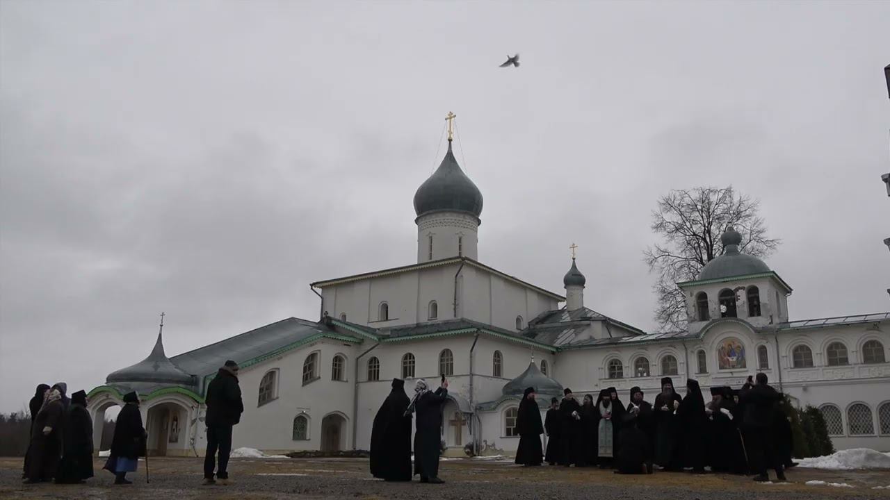 В Крыпецком монастыре выпустили белых голубей на праздник Благовещения Пресвятой Богородицы.