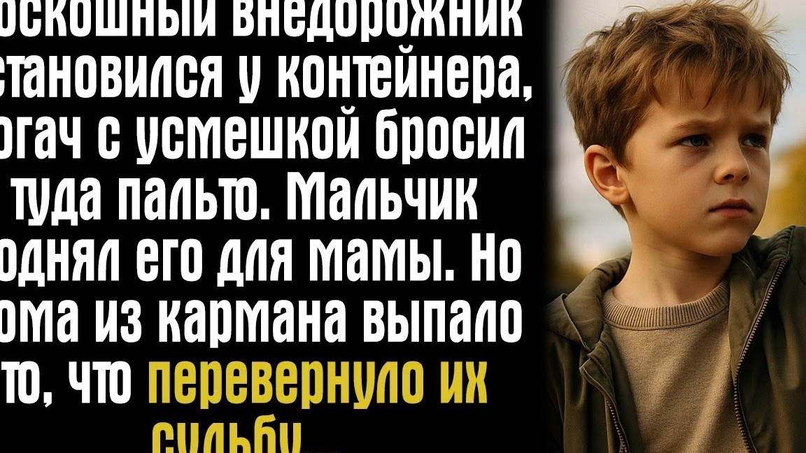 Роскошный внедорожник остановился у контейнера, богач с усмешкой бросил туда пальто. Мальчик..