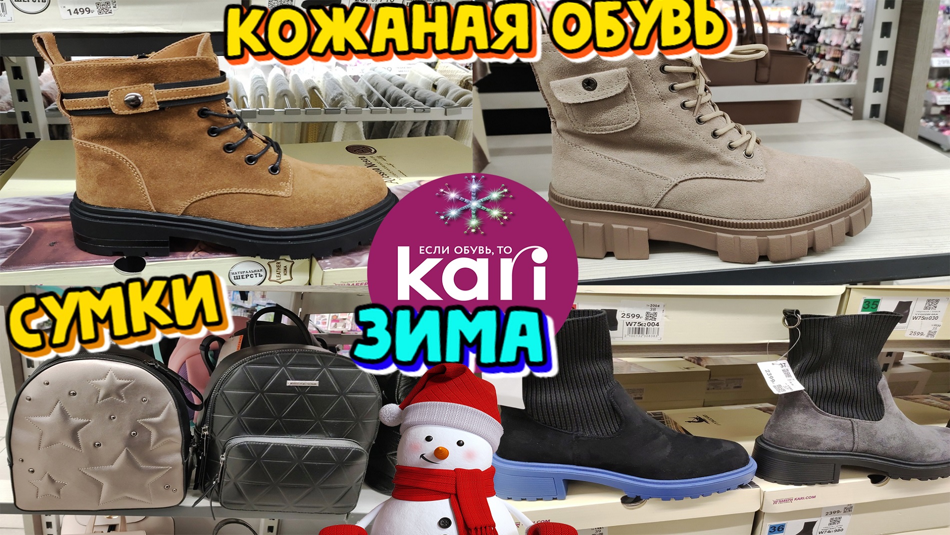 Кожаная обувь с натуральным мехом в гипермаркете обуви Kari. Женские сумки и рюкзаки по отличным ценам. Каталог обуви. Зима 2022-2023. Обзор
