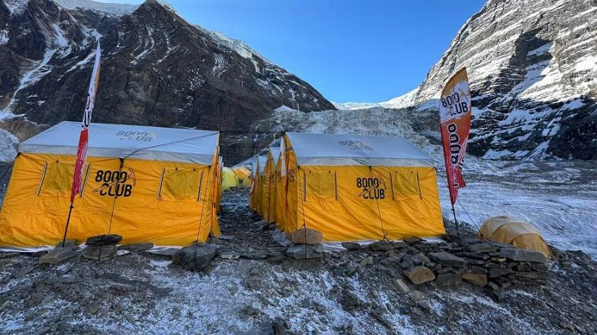 Группа Клуба 8000 "Клуб Любителей Дхаулагири" в базовом лагере Дхаулагири