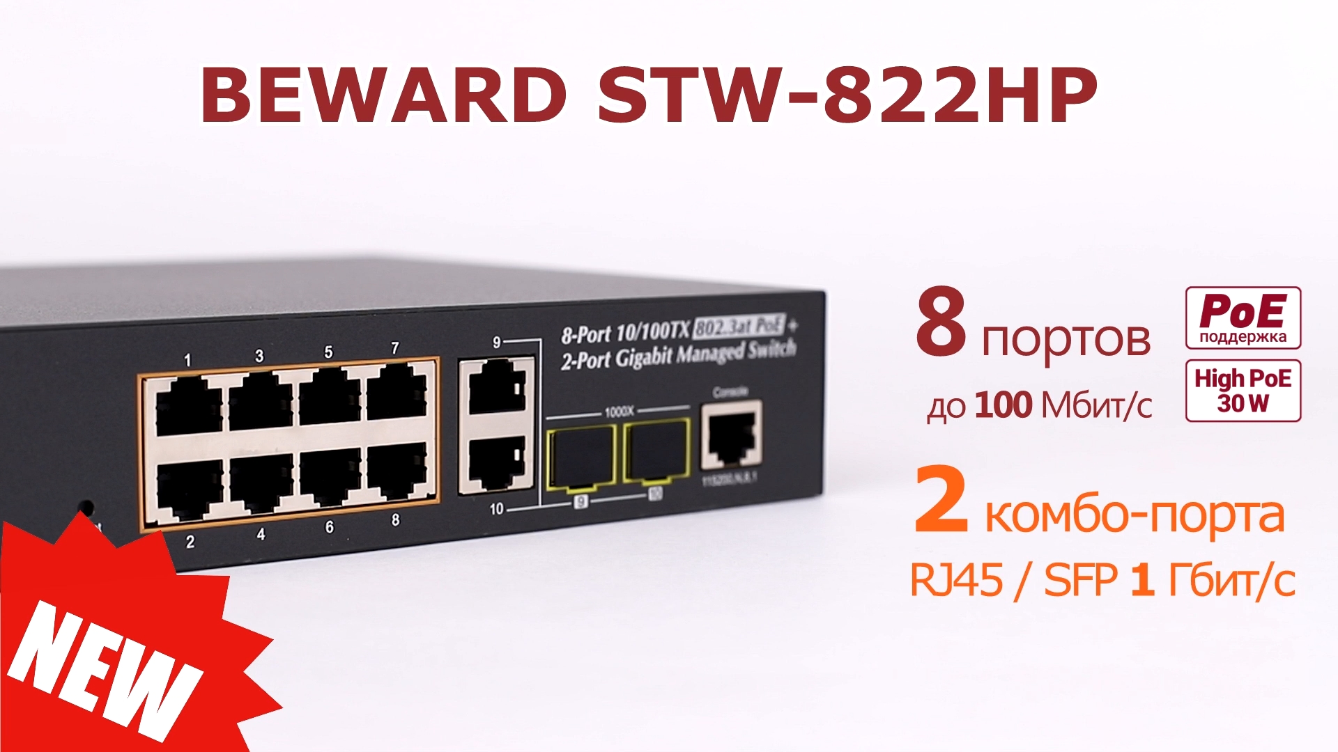 Обзор BEWARD STW-822HP: управляемый коммутатор, 8 портов High PoE 30W , 2 порта TP_SFP, бюджет 120W