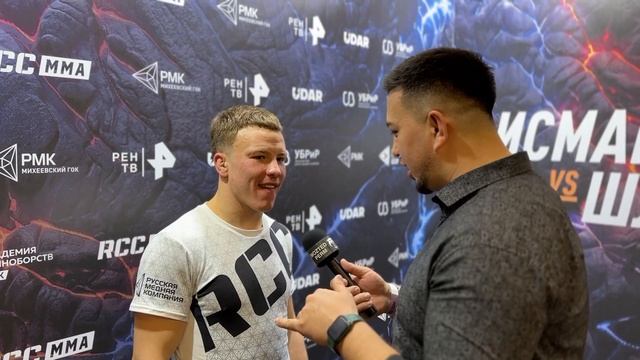 Я надеюсь, что с соперником все хорошо. Я не хотел, чтобы так вышло. Я хотел завершить побыстрее, но не настолько быстро. Я попал ему в грудь, стараясь сильно его не покалечить. У меня нет слов пока. Попробуйте поставить себя на мое место. Все только началось, а я уже даю интервью. Но я очень переживаю за Максима. Вся подготовка прошла на базе Академии. Я практически жил в зале. Тренировки два раза в день. Иногда отвлекался, чтобы набраться сил эмоционально и духовно. Вся подготовка была в зале с ребятами из «Архангела Михаила». Для меня сегодня важный день и важный бой. Мой дебют состоялся. Мне было важно показать себя именно сегодня».