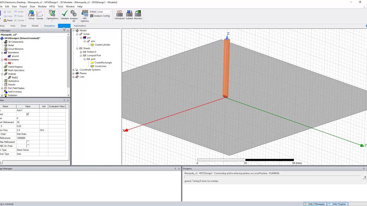 Monopole-антенна в среде ANSYS HFSS