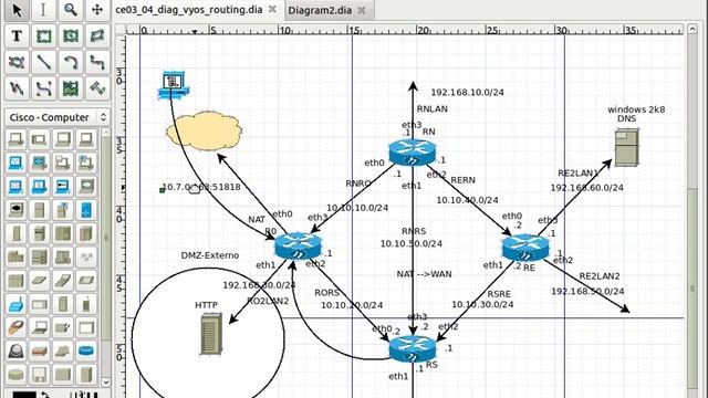 Configuracao de DNAT em Vyos (router virtuais). Acesso do exterior a pagina Web (interior ou DMZ) Destination NAT (DNAT) or Port Forward on Vyos. Access from WAN to WebPage provide by a server placed on a DMZ
