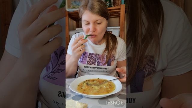 Мукбанг. Чечевичный суп в прикуску с зеленым луком😋