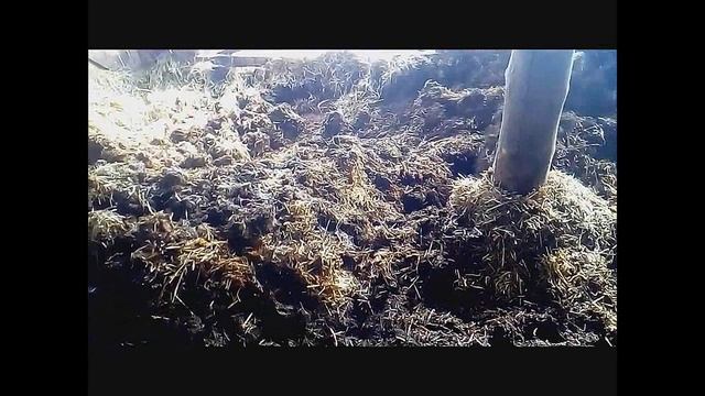 Уборка несменяемой соломенной подстилки экскаватором и бульдозером
