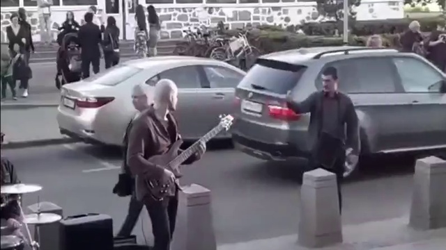 В Москве бухому мужику не понравились уличные музыканты и он решил не стесняться и заявить им об этом. #музыканты #пьяный #драка #москва #разборки