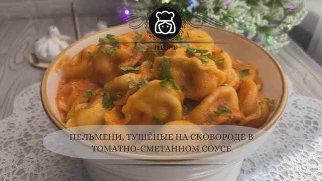 Пельмени, тушёные на сковороде в томатно-сметанном соусе