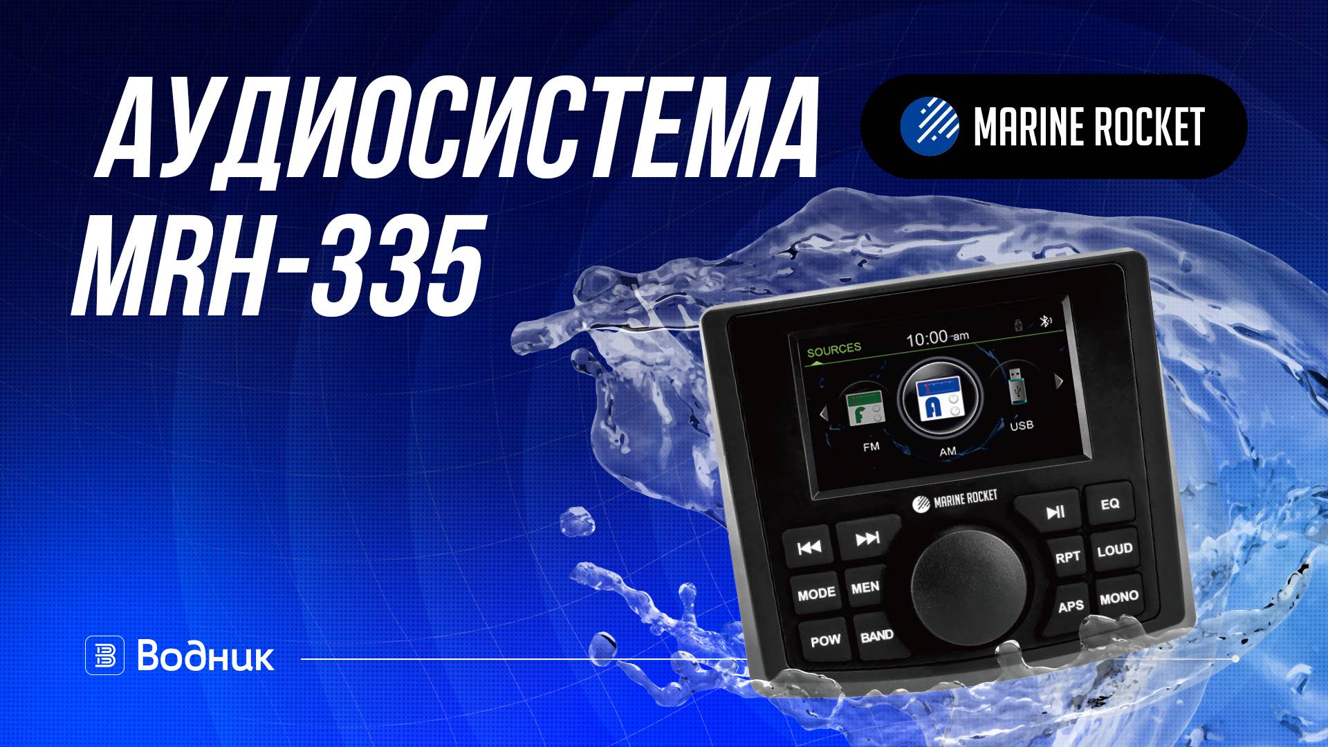 Аудиосистема MRH335 Marine Rocket — цифровая мультимедийная аудиосистема с цветным дисплеем 3,5”, созданная специально для использования в морской среде, — отличный выбор для установки на катере, яхте или квадроцикле. Влагозащищённое исполнение IPX6 позволит не расставаться с любимой музыкой всюду, где бы вы ни находились.