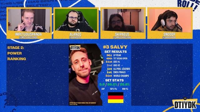 Alanzq returns alongside host Impetuous Panda as they are joined by Remix Rumble Championship fifth-place finisher Skipaeus and Snoodyboo, one of the biggest competitive TFT players and content creators from Spain. Together, they talk about EMEA's run at worlds, the new competitive format, the final rankings, and what's to come in Set 11. 0:00 - Intro 0:17 - Welcome to EMEA Episode 4 6:15 - Worlds Recap 31:40 - EMEA Set 10 Final Ranking 1:13:23 - TFT News/Updates 1:37:56 - Set 11 Unit, Item, and Augment Tierlists 2:06:35 - Closing #teamfighttactics #tft #DTIYDK