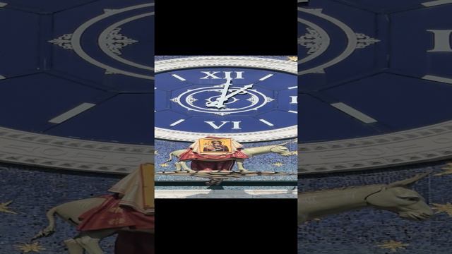 Эти часы носят название «Часы с динамической скульптурной композицией Явление иконы Божией Матери Троеручица». Но многие называют их Иисус на ослике, хотя на ослике едет только икона. Есть очень интересная история о перенесении на Афон образа Божией Матери «Троеручица». В XIII веке эту икону преподнесли в дар святителю Савве Сербскому, который перенёс её на свою родину. Но времена тогда были неспокойные и во время турецкого нашествия на Сербию, хранители иконы положили ёё на осла, а после отпустили его без сопровождающего. Животное дошло до Афонского Хиландарского монастыря, где святыня и была встречена братией. То ли осел четко знал куда идти, то ли вера помогла направить осле по правильной дороге, но чудо свершилось. Икона была спасена.
