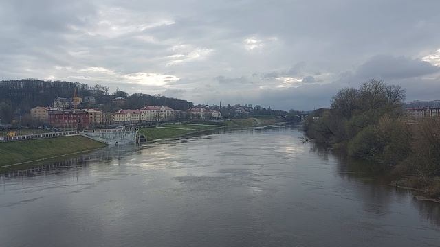 Днепр с моста у Крепости в Смоленске. Разлив. Крепость. Звонят колокола Успенского Кафедрального Собора.