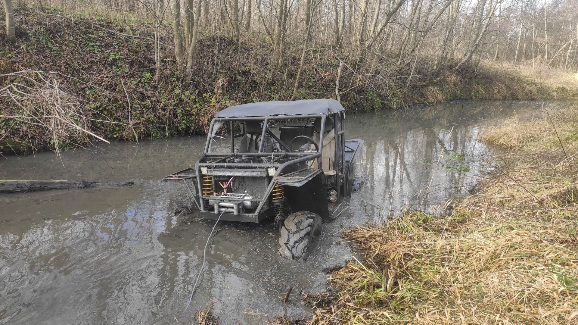 Квадроцикл и прототип на бездорожье, большие илистые ручьи и болото