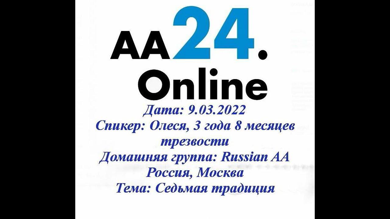 9.03.2022 Олеся, 3 года 8 месяцев трезвости Россия, Москва Russian AA ТЕМА: Седьмая традиция