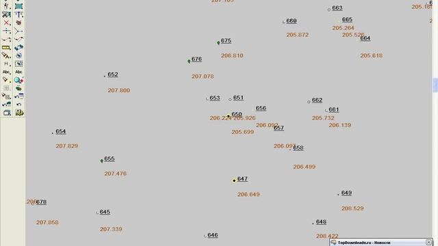 Производится загрузка точек в "ГИС Карта 2008" с настройкой визуализации объектов. Точки хранят в себе значения абсолютной высоты. По этим значениям строятся горизонтали. Затем производится построение матрицы высот на выделенный фрагмент карты. Для более наглядного представления о форме рельефа строитрся 3D модель.