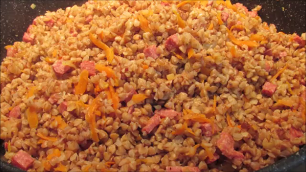 Гречка с овощами и с колбасой рецепт гречка 2 ст. колбаса п/к 200 гр. морковь 100 гр. лук репчатый 100 гр. соль, перец по вкусу вода 700 мл. масло растительное для обжарки #гречка #гречкарецепт #какприготовитьгречку #обед #ужин #наскоруюруку #кулинария #рецепты
