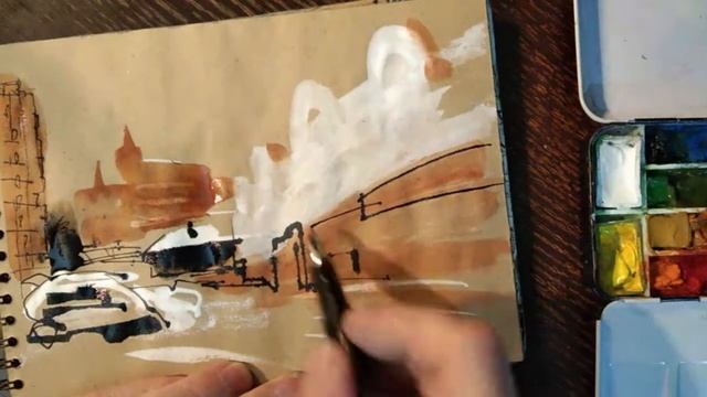 Городская зарисовка Акварель Демонстрация UrbanSketch Watercolor Brush Amazing Street Art Painting