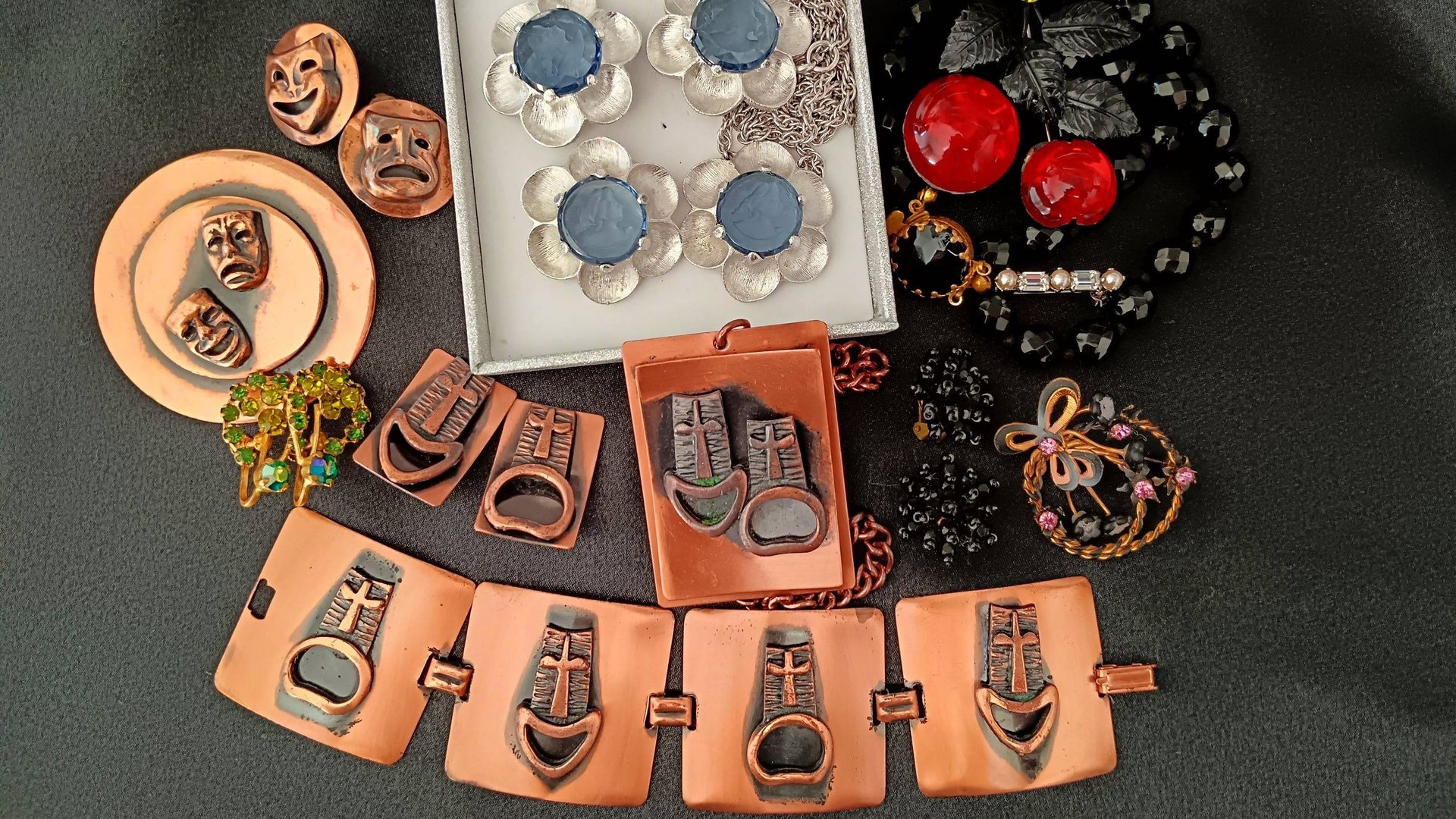 175. Бижутерия Austria, медная бижутерия с венецианскими масками, инталия от TARA
