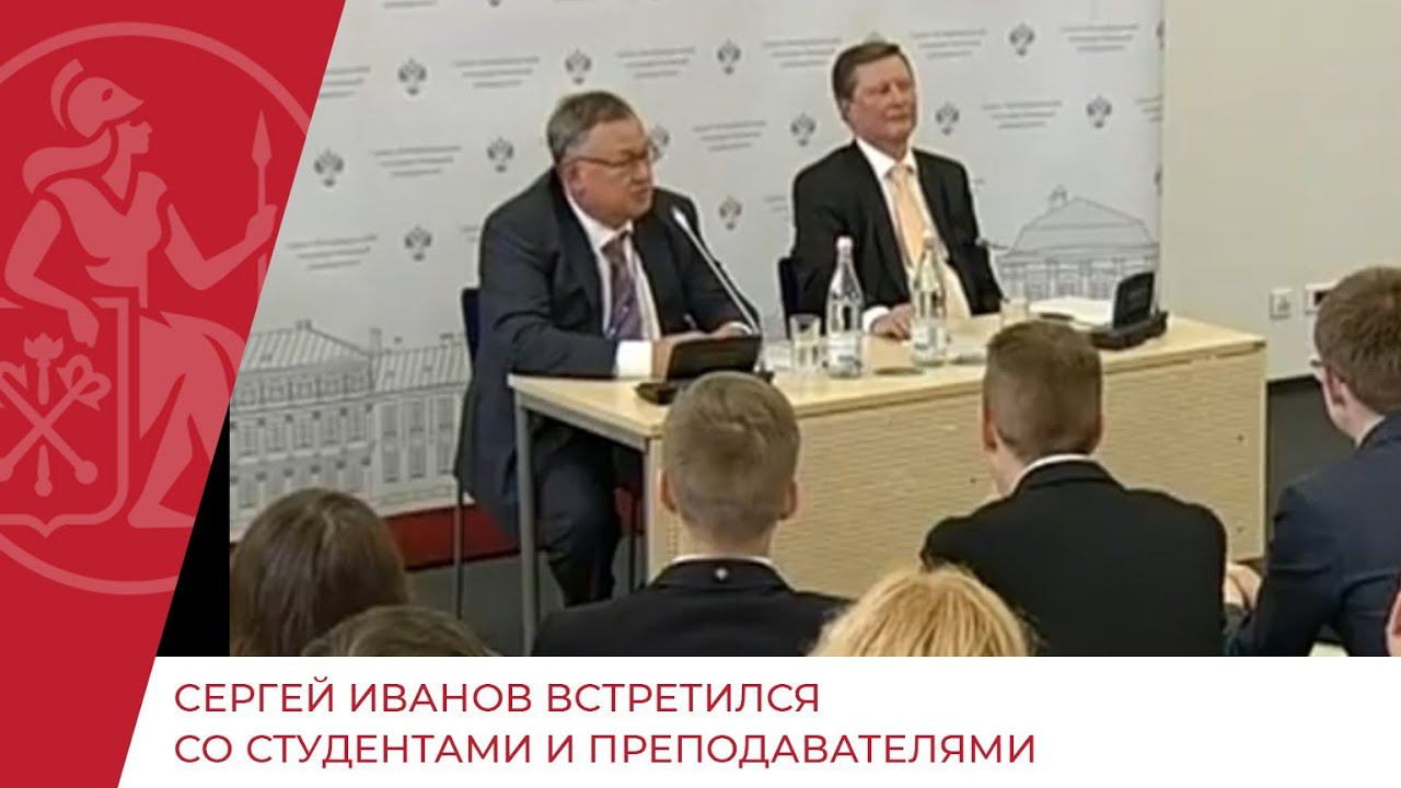 5 канал: Глава Кремлёвской администрации Сергей Иванов провёл встречу со студентами и преподавателями Высшей школы менеджмента Петербургского госуниверситета. Вопросов от аудитории было много. Original: http://www.5-tv.ru/news/107805/