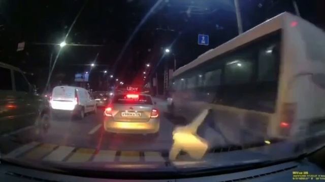 Мужчина из Воронежа решил нарушить правила движения и перебежать дорогу. От столкновения с автобусом его отделили пару сантиметров. В рубашке родился.