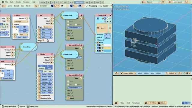 Лучшая практика соединения сеток shift+A - Меню узлов ﹥join - макросы для массовых операций с узлами, например это соединение сокетов №1,2,3. Можно соединять ﹥join13 - 1 и 3 сокеты. ctrl+shift+H - Сокрытие геометрии узла типа вьювер ctrl+shift+D - дублирование узла с сохранением вводных связей
