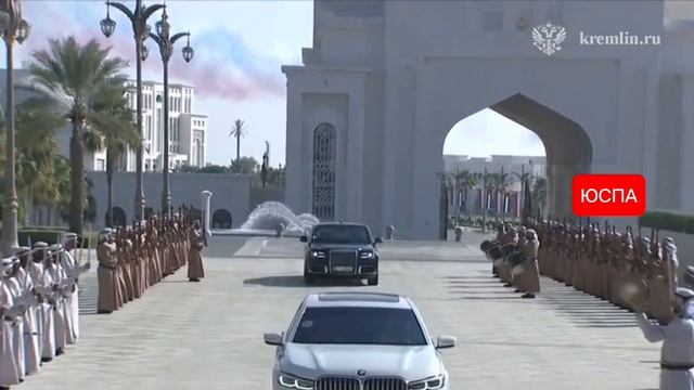 Владимир Путин прибыл на переговоры в ОАЭ. Церемония его встречи и сопровождения кортежа включала в себя почётный караул по пути следования, залпы из орудий, авиационное шоу с раскрашиванием неба в цвета российского флага. ЮСПА / Главное @uspaglavnoe ЮСПА. Справедливый. Только ваш.