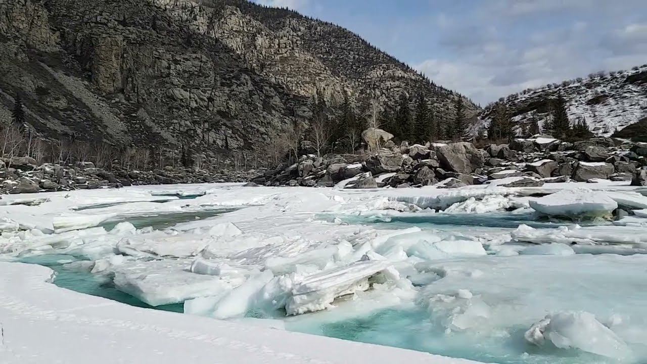 Лёд вскрылся и плывёт по Катуни в месте слияния с рекой Б.Ильгумень в Горном Алтае. Мой канал на Rutube https://rutube.ru/channel/24641478/videos/
