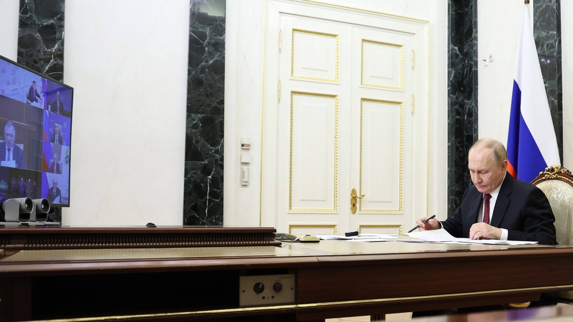 Владимир Путин по видеосвязи провёл совещание с членами Правительства, Кремль, 15 октября 2025 года