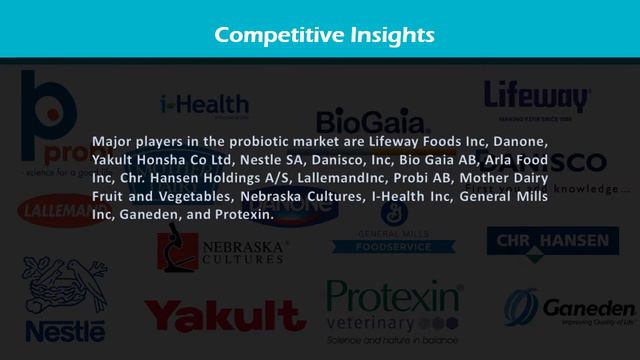 The global market size for probiotics industry is segmented by product (food and beverages, dietary and supplements market, animal feed products) by the end-users (human probiotic products, animal probiotic products) by strain types (lactobacillus, streptococcus, bifidobacterium, yeast, spore, formers) & by Geography, Forecasting years 2017-2025 Read full insights and download sample report at https://www.inkwoodresearch.com/reports/global-probiotics-market-forecast-2017-2025/